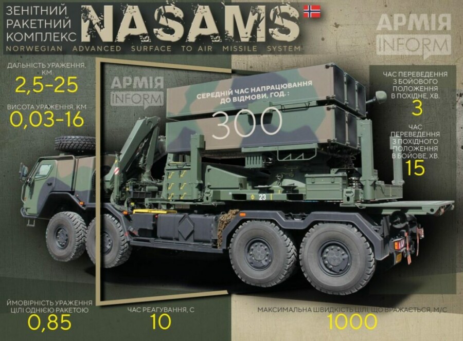 Украина станет 14-м заказчиком ЗРК NASAMS и 11-м их получателем. В американских СМИ звучат намеки, что запланированные к поставке ЗРК имеют увеличенную дальность действия. Это позволяет предположить, что Украина получит систему с новыми зенитными ракетами AMRAAM-ER и дальностью поражения целей до 40 км.