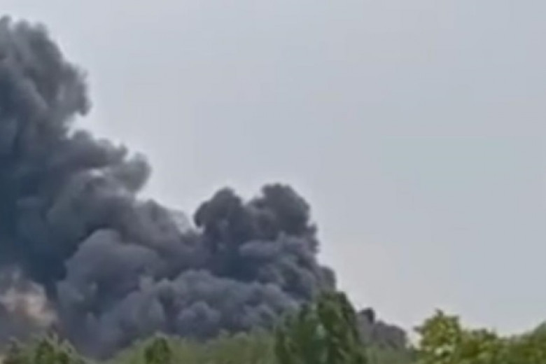 В поселке Мирное, что близ Мелитополя, горит база воинской части МЧС, которую захватили оккупанты.