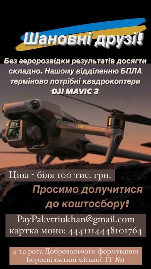Для кого: відділення БПЛА взводу розвідки 4-ї роти ДФ Бориспільської міської ТГ #1 в/ч А7303