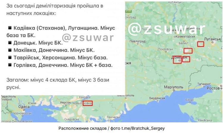 Напомним, на днях стало известно о поражении склада боеприпасов в Кадиевке (бывший Стаханов), Луганская область. Детонация длилась два часа после попадания.