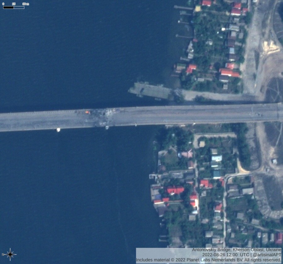 Он опубликовал фото спутника компании Planet Labs. Снимок был сделан около 15:00 26 августа, почти через час после ударов украинских военных.