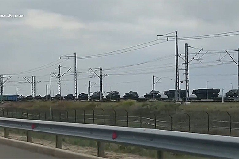Стратком ВСУ опубликовал также видео Крым. Реалии, где видно много военной техники на железной дороге.