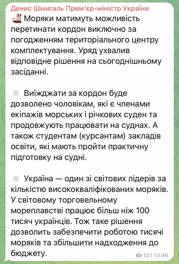 Выезжать за границу будет разрешено мужчинам, которые являются членами экипажей морских и речных судов и продолжают работать на судах. А также курсантам учебных заведений, которые должны пройти практическую подготовку на судне.