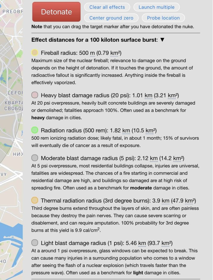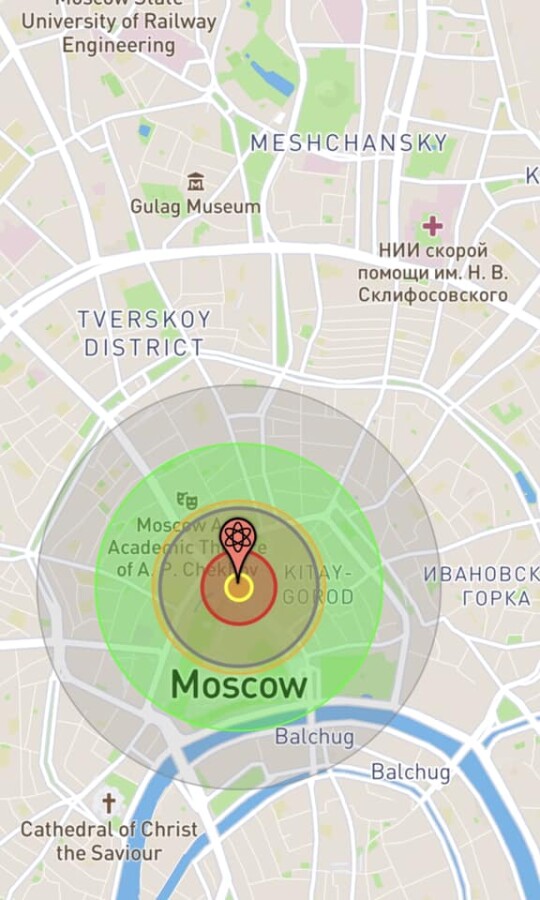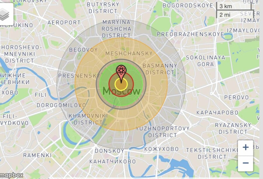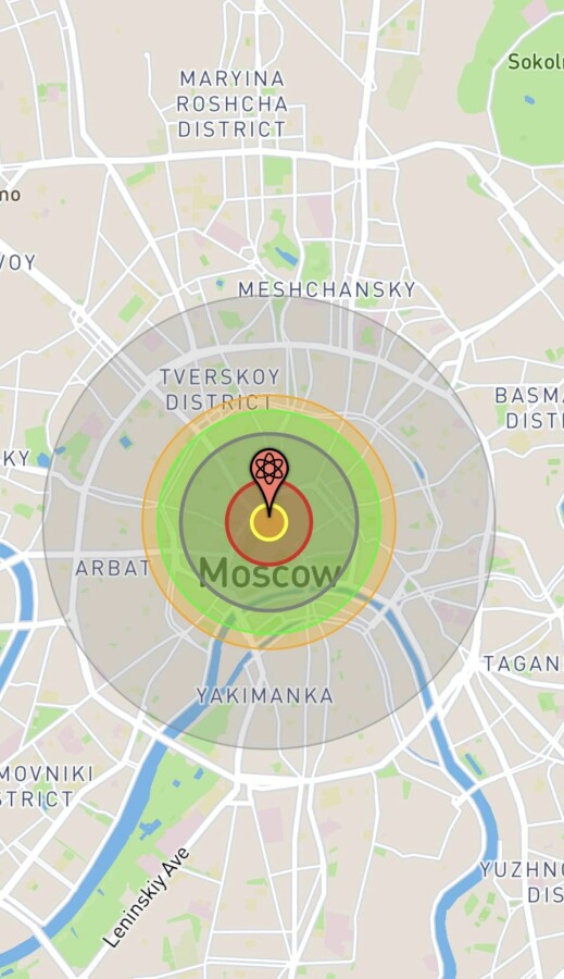 Последствия тактического ядерного удара по москве. 1, 10 и 100 килотонн, которые немедленно прилетят столицу эрефии в случае удара с их стороны по Украине.