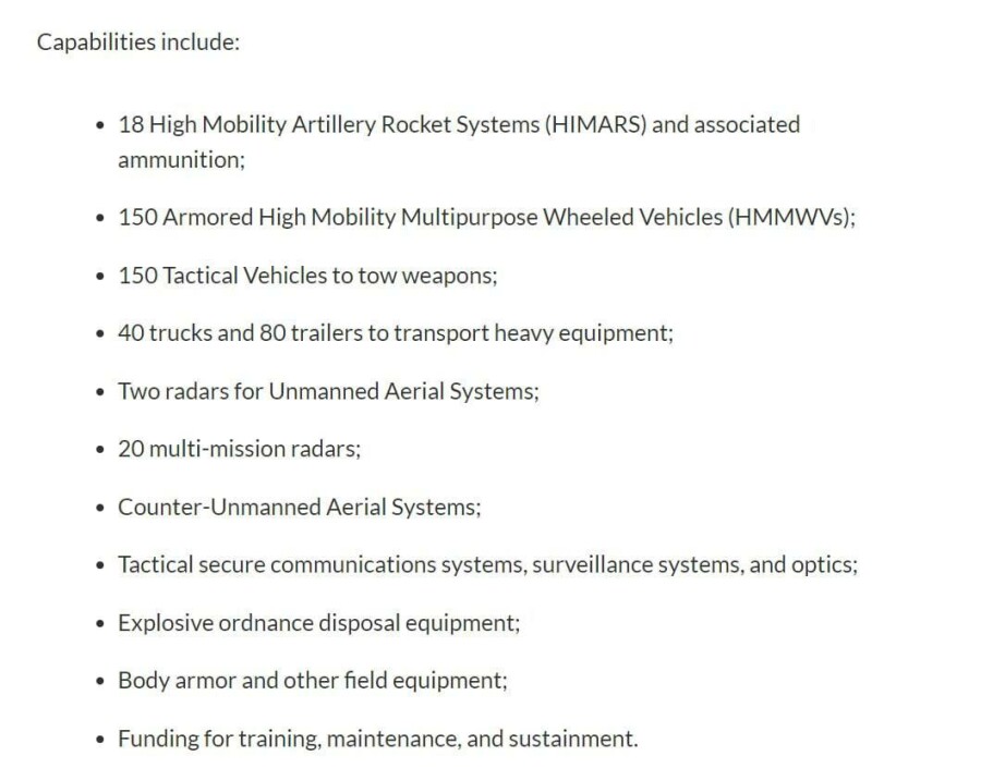 документ Офіційний список нової допомоги від Пентагону - Україна отримає надсучасне спорядження та зброю