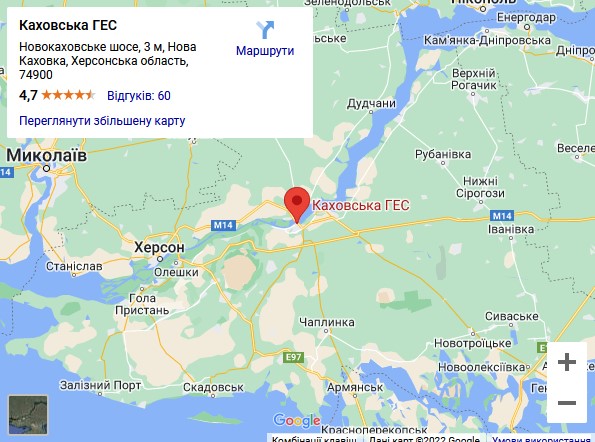 Если страна-террорист Россия подорвет Каховскую ГЭС, это вызовет катастрофические последствия наподобие последствий цунами. Множество населенных пунктов, находящихся вблизи плотины, а также город Херсон будут затоплены.