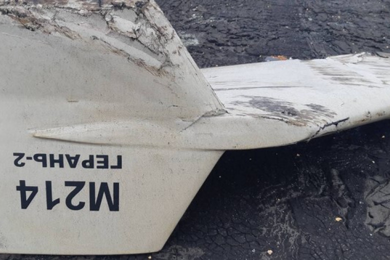 "Это дрон "Шахид-136", который презентовали на аукционе в Иране в декабре 2021 года, посмотрите на хвост и крылья дрона, и сравните его с тем, что было найдено в Украине. Это точно тот же продукт, но он скрыт кириллическими буквами (на фото написано Герань-2 - УНИАН), но даже шрифт точно такой же", – подчеркнул Герцог.