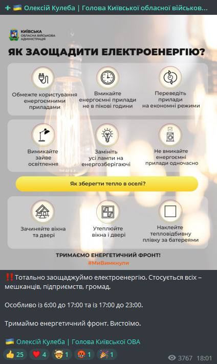документ Глава Киевской ОВА показал, как сэкономить электричество и тепло в квартире