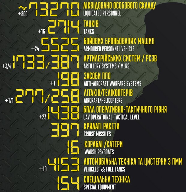личного состава — около 73 270 человек (+800 за прошедшие сутки);