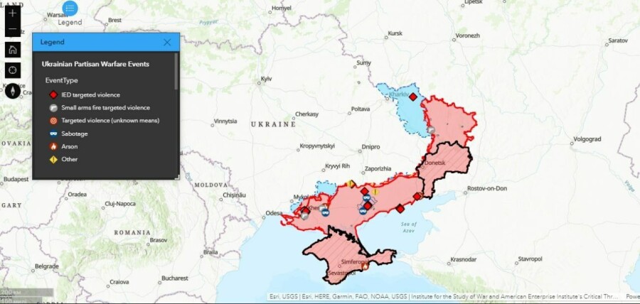 За даними Інституту вивчення війни (ISW), ефективні українські партизанські атаки змушують російське керівництво відволікати ресурси від операцій на фронті для безпеки тилових районів.