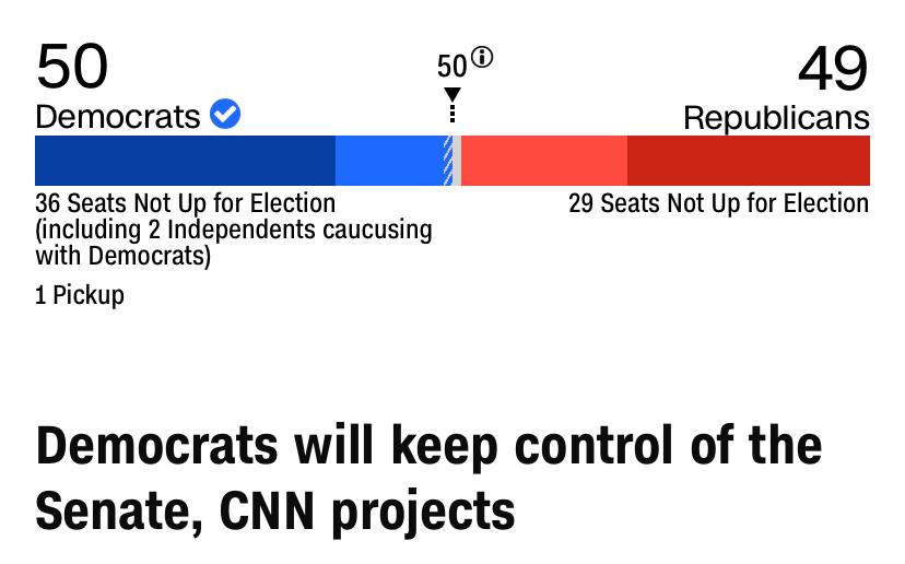 CNN пишет, что это станет возможным, благодаря победам кандидатов от демократической партии в Неваде и Аризоне.