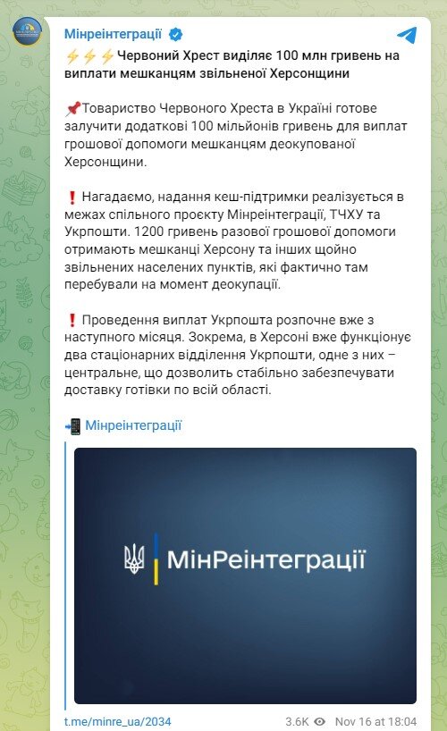 Как отмечается, получить помощь смогут жители Херсонщины, которые не были эвакуированы с региона во время оккупации. Получить деньги жители смогут через "Укрпочту".