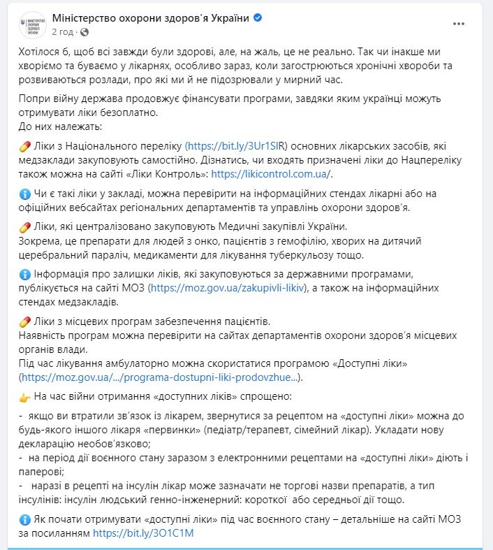 К тому же во время лечения амбулаторно можно воспользоваться программой «Доступные лекарства» (https://moz.gov.ua/.../programa-dostupni-liki-prodovzhue...).