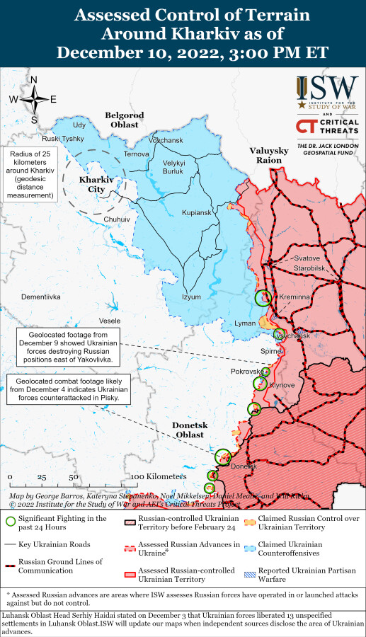 Ранее ISW оценивала, что российские силы намерены увеличить темпы наступления в западной части Луганской и восточной части Харьковской областей, чтобы упредить усиление украинских контрнаступательных операций зимой.