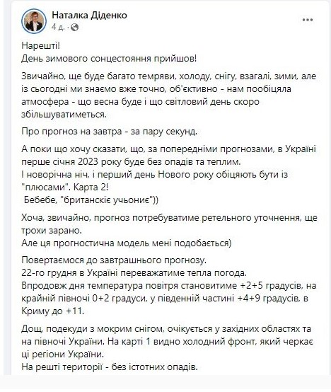 Об этом сообщает синоптик Наталья Диденко.