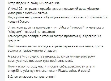 Погода в Украине на Новый год будет совсем не зимней. Снега и мороза 31 декабря и 1 января не будет, а столбики термометров поднимутся к значениям до +9 градусов.
