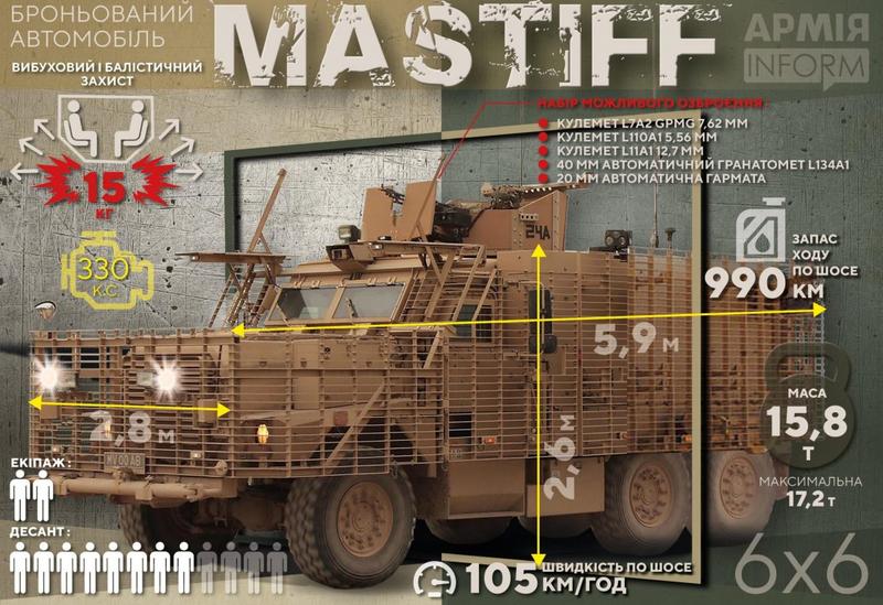 ХАРАКТЕРИСТИКИ БРОНЕМАШИНЫ МАСТИФ