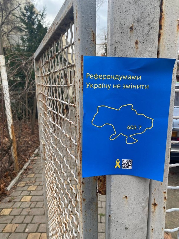 "Активисты движения Желтая лента в Симферополе и в Севастополе расклеили очередные листовки, где мы напоминаем рашистам, что 2023 год - это год восстановления территориальной целостности Украины в пределах 1991 года. Граждане Украины, проживающие на ТОТ АР Крым все понимают и ждут освобождения от рашистов, они ждут возвращения украинского флага", - сообщает ТГ-канал партизанского движения.