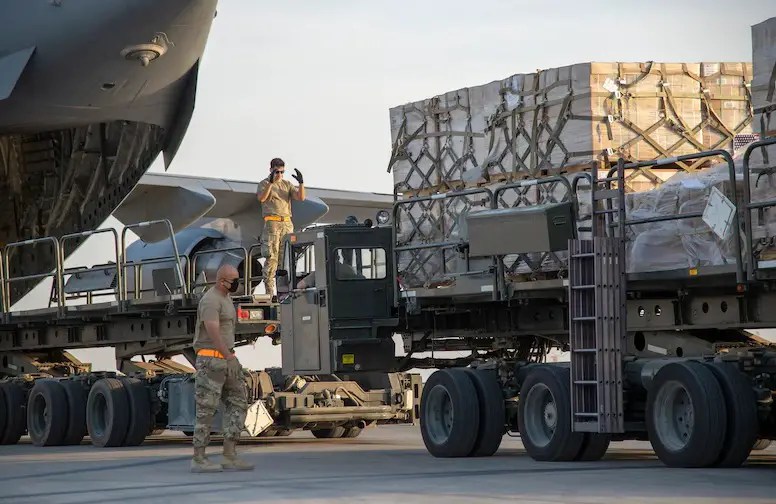Она также опубликовала видео, на котором видна загрузка бронированных ремонтно-эвакуационных машин на борт украинского грузового самолета Ан-124 Руслан.