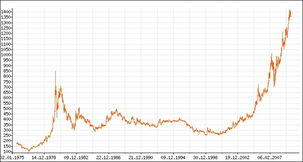 Итоговый рост цены золота за прошлый год оказался самым объективным аргументом в пользу хранения сбережений в банковских слитках. Аналитики, которые говорили об искусственном раздувании цены на желтый металл и прочили ему обвал уже в 2010-м, оказались не у дел. Самыми точными оказались прогнозы, предсказавшие, что к концу года за тройскую унцию будут давать более $1400. В декабре был установлен новый исторический максимум — $1431. Так что 30%-ное подорожание золота за прошлый год — более чем впечатляющий результат. Это весомый аргумент для тех, кто все еще размышляет о возможности перевода сбережений, особенно долгосрочных, в золото.