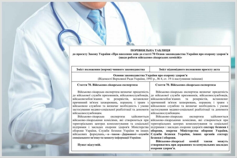 Зокрема, планується закріпити, що окрім ТЦК та СП, військово-лікарські комісії також можуть створюватись при державних та комунальних закладах охорони здоров’я.