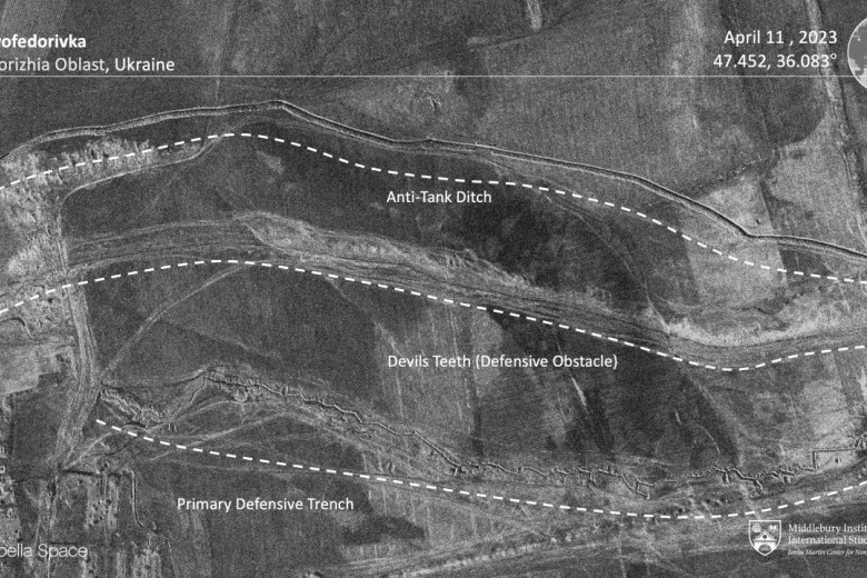Издание изучило снимки тысяч оборонительных сооружений россиян и украинцев. И пришло к выводу, что больше всего они возведены в Запорожской области и возле Крымского перешейка.