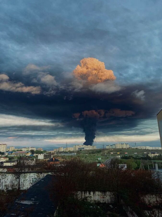 "Горит резервуар с топливом в районе улицы Братьев Манганари в Казачьей бухте. По предварительной информации, возгорание произошло из-за попадания БПЛА. На месте работают все необходимые спецслужбы. Площадь пожара около 1000 кв м, пожару присвоен 4 класс", - заявил гауляйтер.