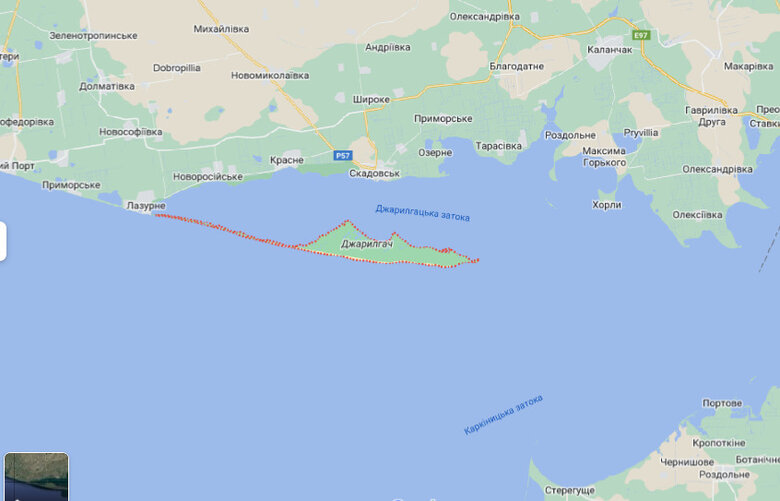 "По подтвержденной информации, российские оккупационные войска соединили остров Джарылгач с оккупированной материковой частью Херсонской области в районе населенного пункта Лазурное, засыпав переправу к острову песком. Это сделано с целью более интенсивного использования природоохранной территории национального парка для военных нужд. В частности, оккупанты обустроили на острове военный полигон.