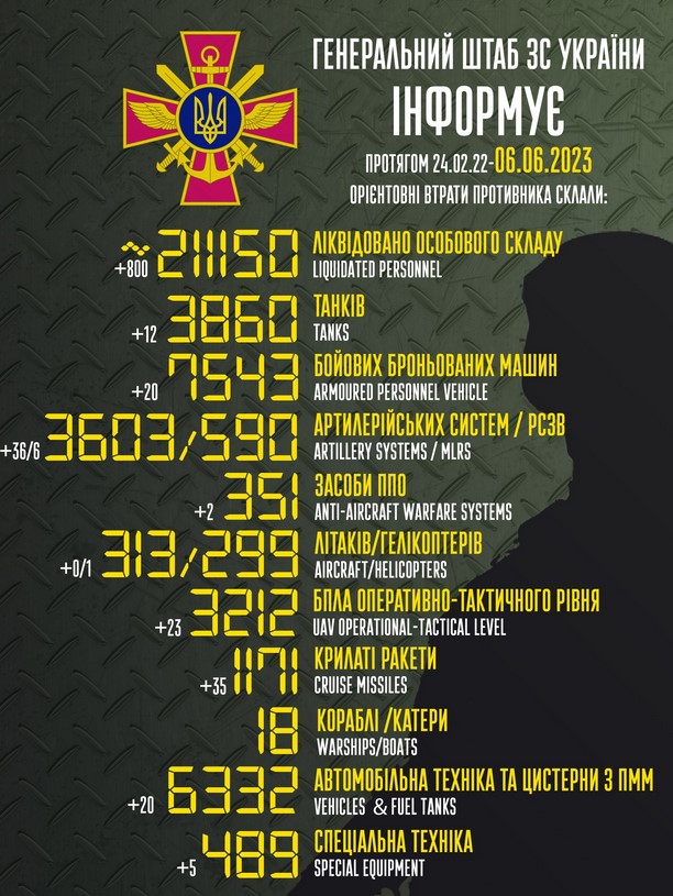 Общие потери врага с начала полномасштабного вторжения составили: