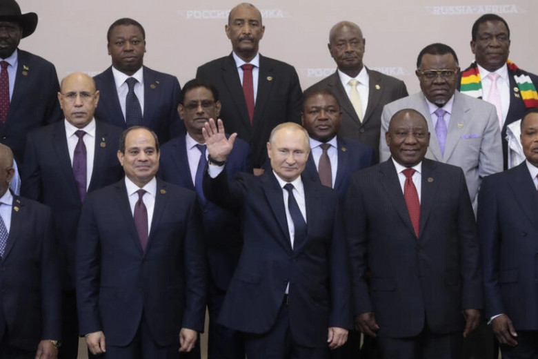 Путин открыл субботние переговоры с представителями Сенегала, Египта, Замбии, Уганды, Республики Конго, Коморских островов и ЮАР во дворце под Санкт-Петербургом, подчеркнув приверженность России к Африканскому континенту.