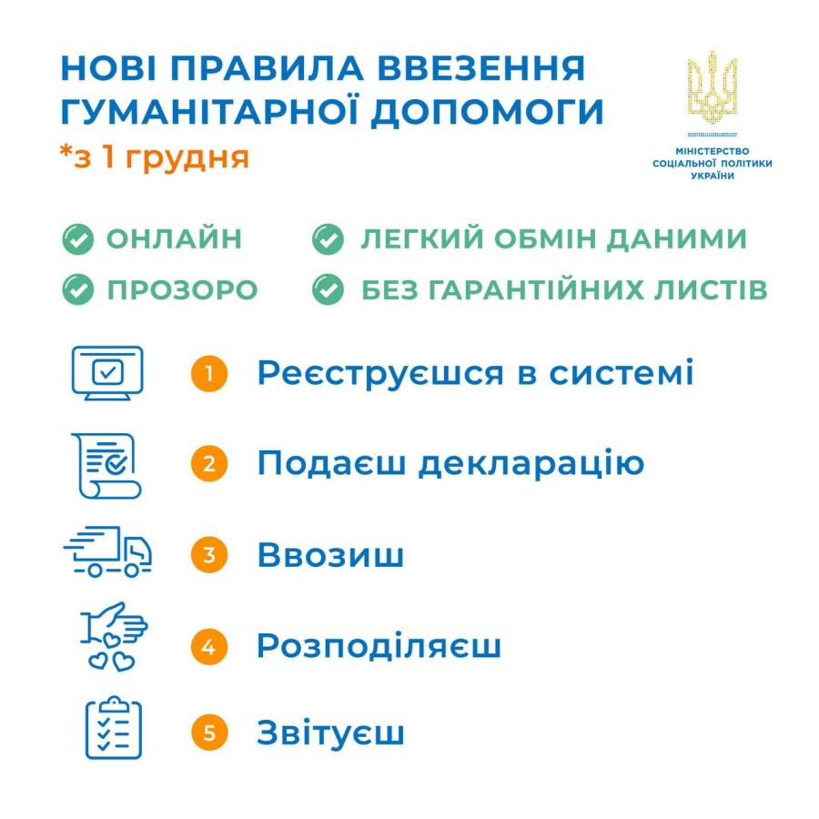 - організації, які ввозять гуманітарну допомогу, подаватимуть публічні звіти після її розподілу