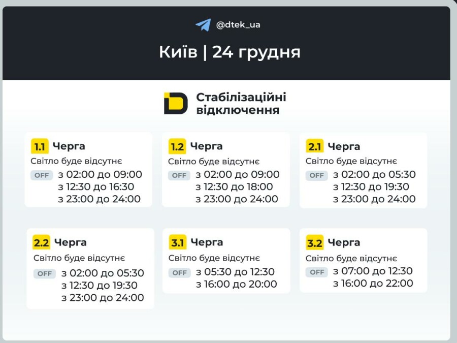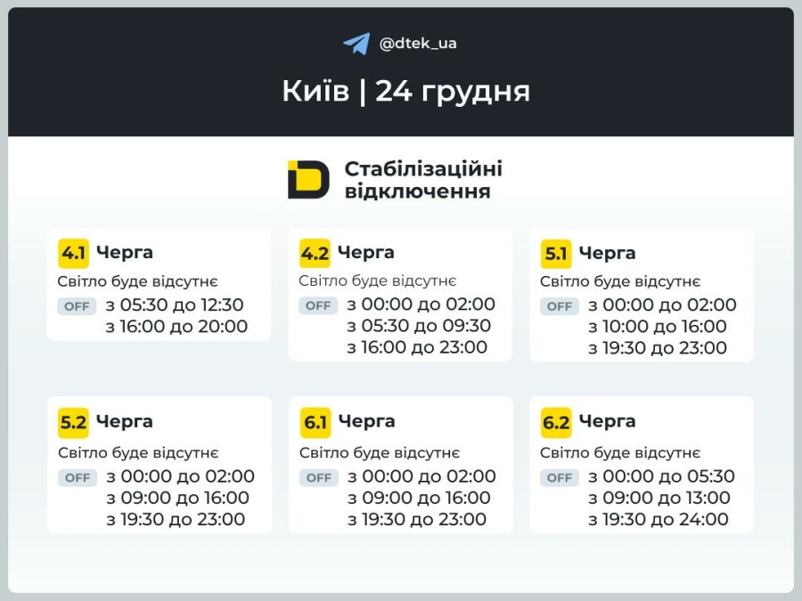 ВІЙНА В Україні Оновлені графіки відключень електроенергії в Києві на 24 грудня