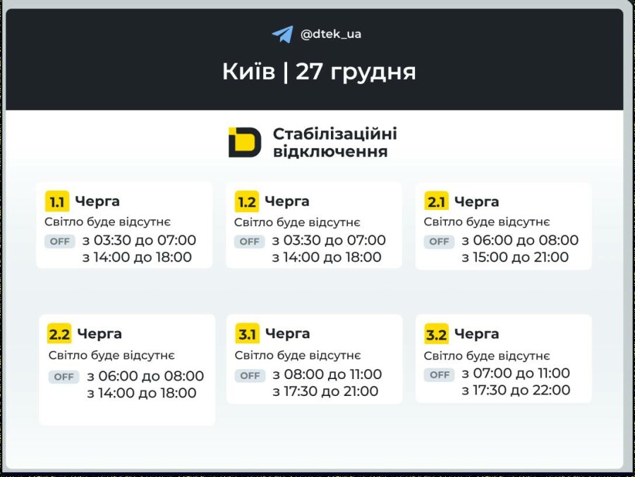 В столиці протягом дня задіяно одразу дві-три черги відключень. Це означає, що населенню доведеться проводити від 3 до 8 годин без світла.