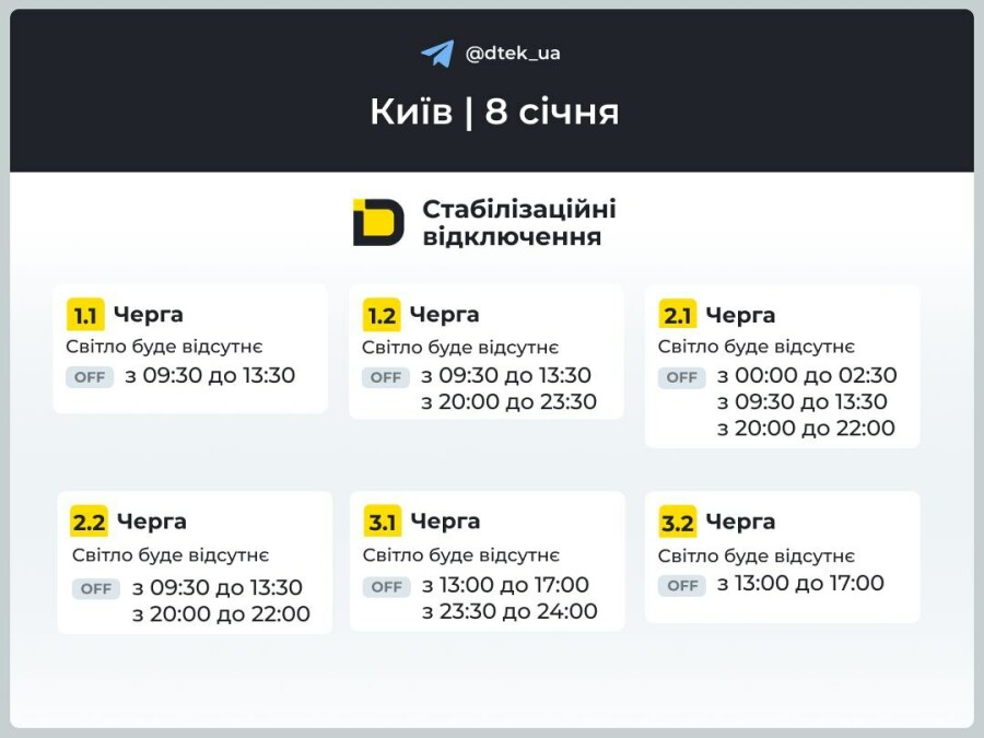 ВІЙНА В Україні Оновлені графіки погодинних відключень електроенергії в Києві на 8 січня