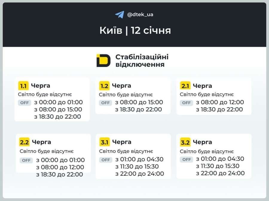 В столиці протягом дня задіяно одразу дві-три черги відключень. Це означає, що населенню доведеться проводити від 3 до 8 годин без світла.