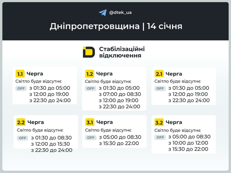 Сьогодні в усіх областях України сьогодні будуть тривати стабілізаційні погодинні відключення світла.