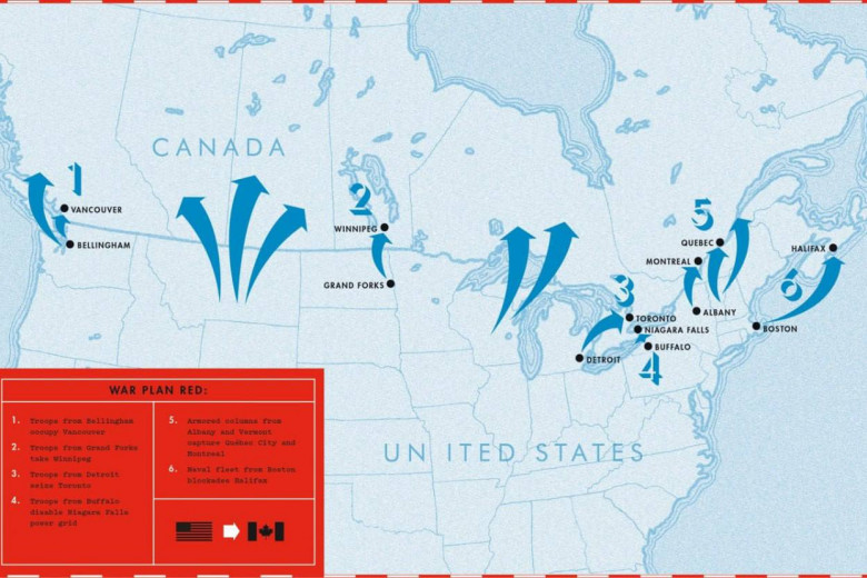 Під час моделювання планувальники виходили зі сценарію, за яким американські війська можуть захопити ключові стратегічні позиції Канади на суші та на морі протягом одного тижня, а можливо, і всього за два дні.