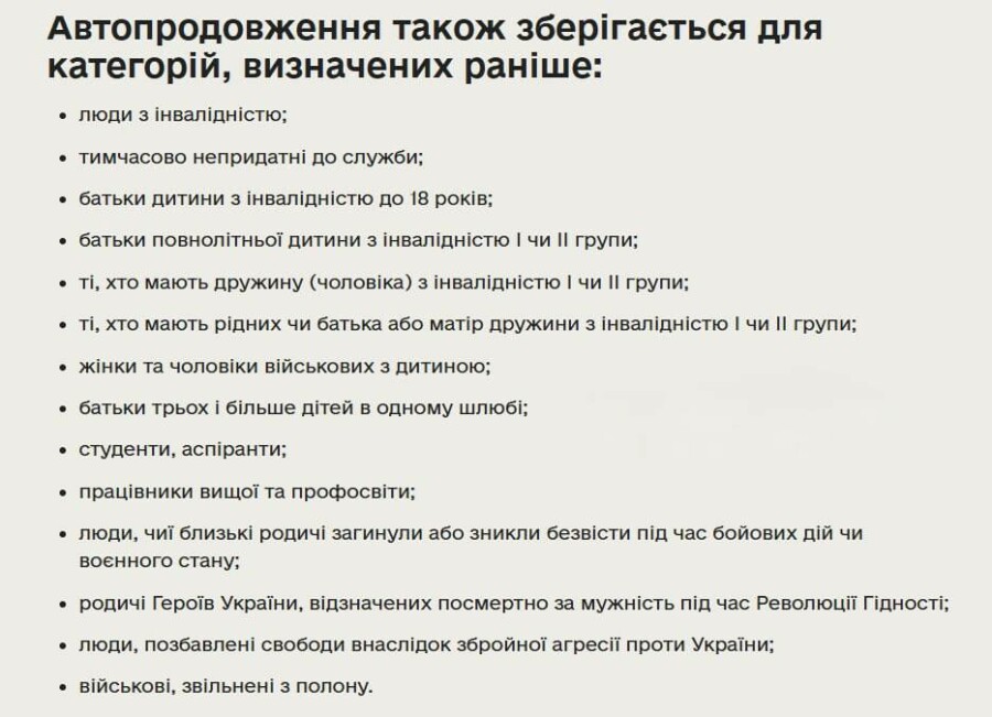 До системи додано відстрочки для 7 категорій українців, при цьому автопродовження зберігається для 14 раніше визначених категорій.