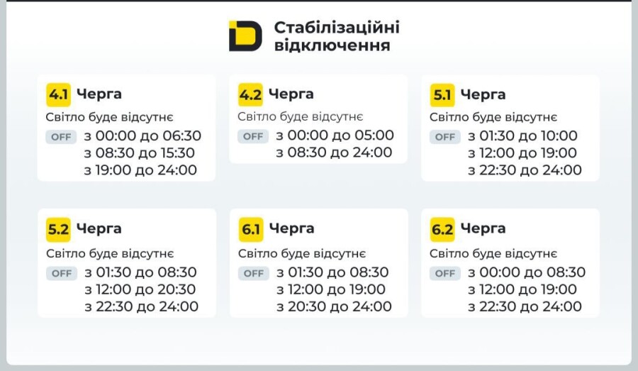 Щоб дізнатися, чи діють графіки саме для вашої адреси, перевіряйте інформацію на сайті або в чат-боті.