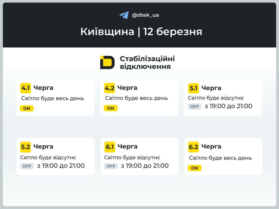 Протягом доби, за розпорядженням НЕК "Укренерго", графік може змінюватися!