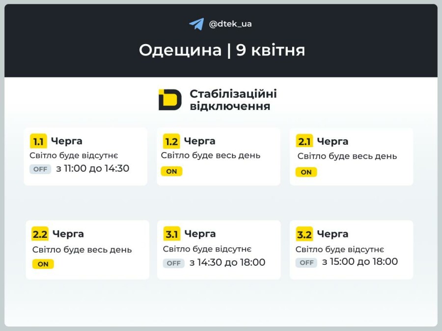 На Одещині за командою Укренерго застосовано графіки погодинних відключень світла.
