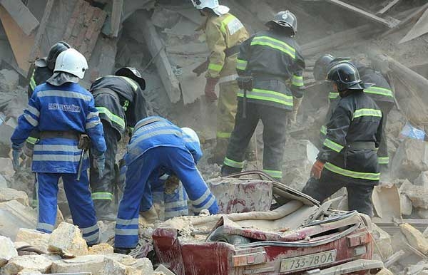Они обнаружили, что произошло частичное обрушение подъезда трехэтажного дома.