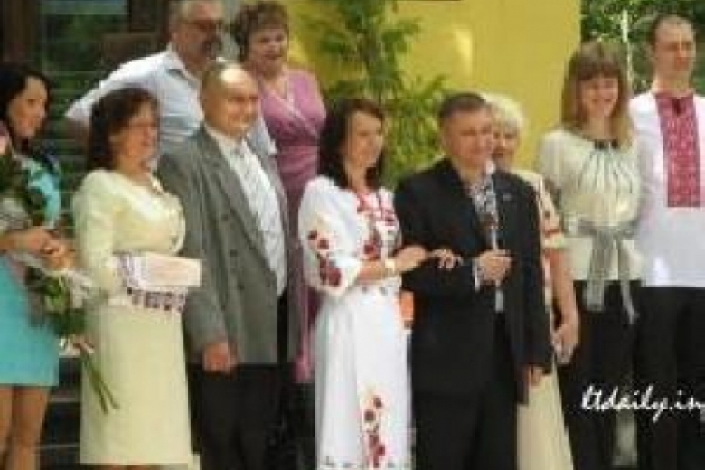 Алексей Кайда также был "вышитым" и при черном пиджаке. На безымянных пальцах у обоих красовались золотые кольца.