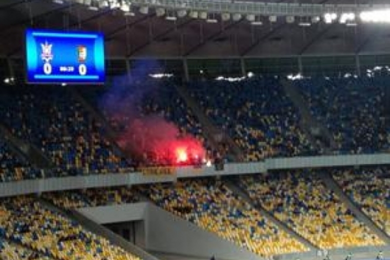 В концовке тайма болельщики начали жечь файеры. Украина смогла создать несколько моментов у ворот соперника, но мяч так и не залетел в сетку ворот Камеруна.