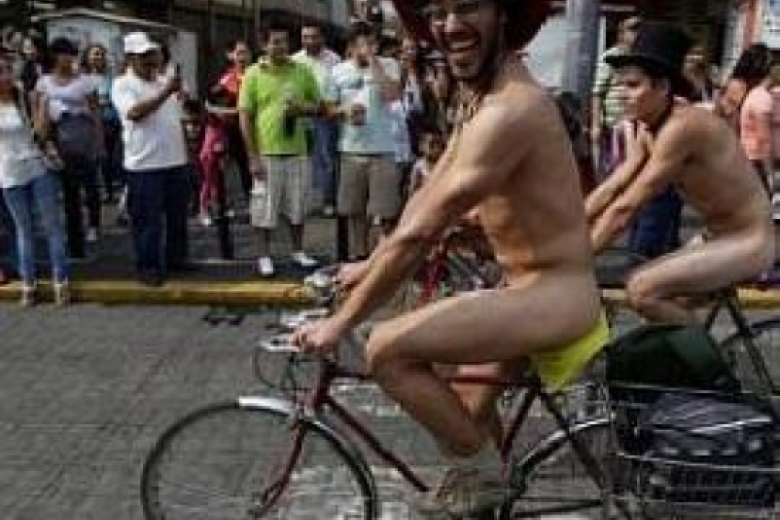 Тысячи велосипедистов проехали по улицам мексиканской столицы Мехико в совершенно обнаженном виде, сообщает newsru.com.
