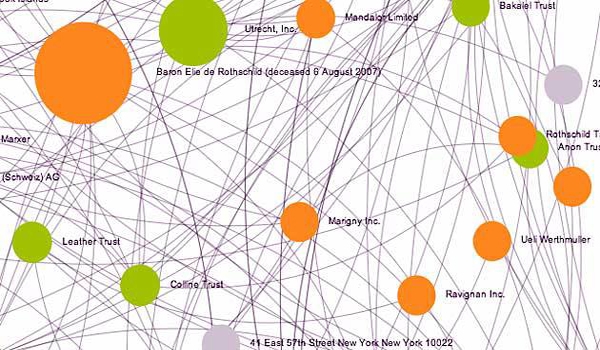 Специальное веб-приложение также показывает графическую визуализацию офшорок и их взаимные переплетения. Во многих случаях кроме фамилий номинальных директоров и номинальных акционеров доступна информация даже о конечных бенефициарах (владельцах).