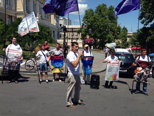 Сегодня, 9 июля 2013 года, в Одессе активисты Общественного движения «Украинский выбор» продолжили начатую в Киеве акцию против навязывания Украине и украинскому народу "европейских ценностей".