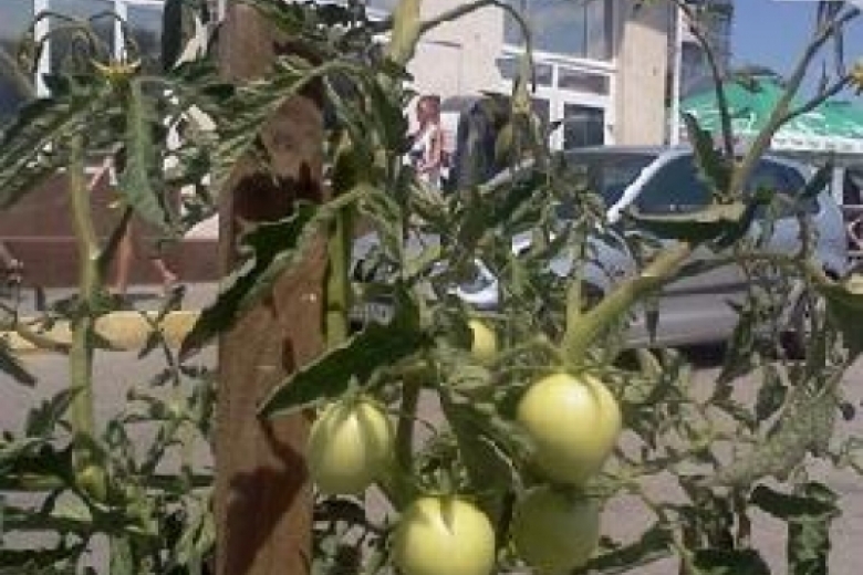 В Севастополе в Артиллерийской бухте прямо на газоне у причала, где останавливается паром, кто-то посадил помидоры.