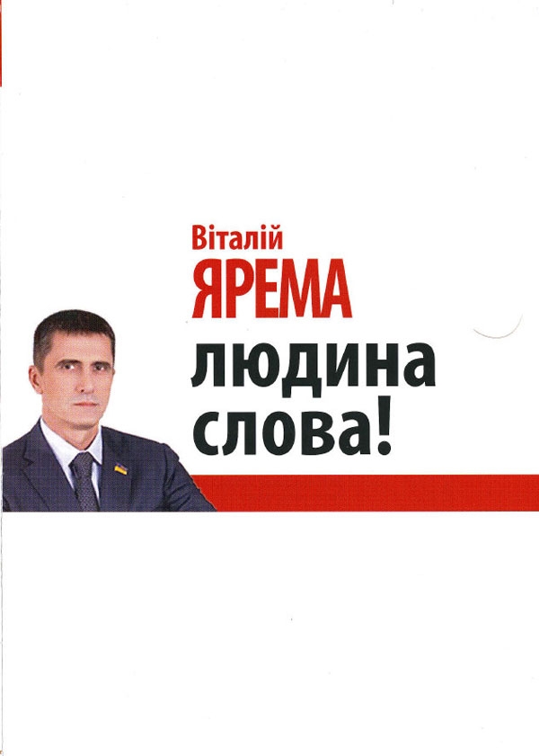 "Обещание: прожиточный минимум и минимальная заработная плата будут доведены до 2400 грн, зарплата бюджетников будет увеличена как минимум в два раза - выполнено", - утверждает в своей агитлистовке Ярема. Напомним, что сейчас минимальная заработная плата составляет немногим более 1200 грн. и ее двукратное повышение пока не планируется.