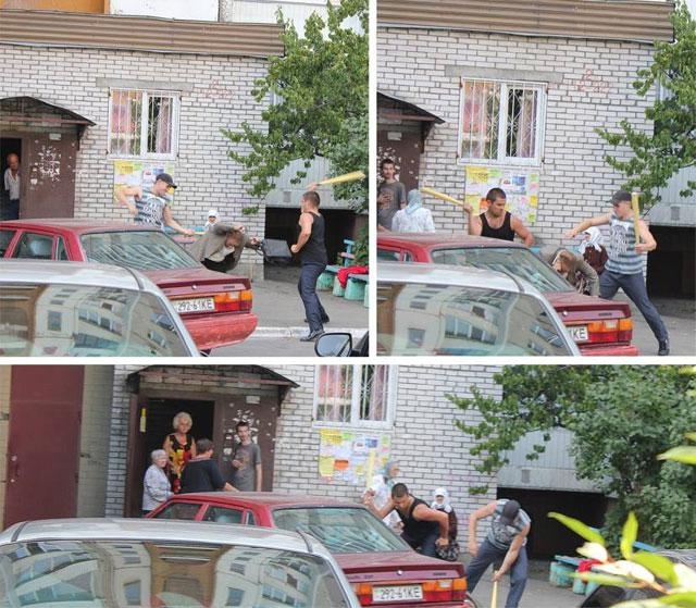 Отметим, что человек в черной майке с битой знаком крымчанам по предвыборной кампании в нардепы в 2012 году - это специалист по «черному» пиару и проведению массовых акций Сергей Куценко. Он представлял крымскую организацию «технической» Молодежной партии на выборах в мажоритарном округе №1 в Симферополе.